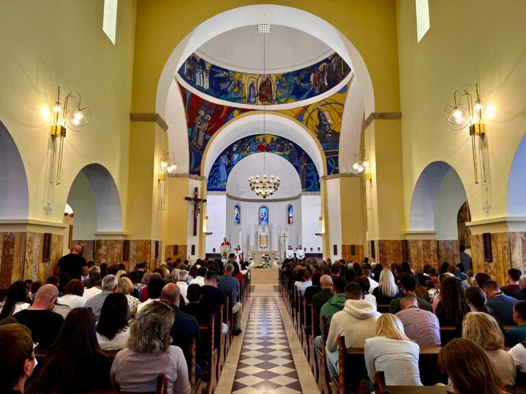 Kada zastanemo na stubištu našega samostana i bacimo pogled s trećeg kata na Aveniju ispred crkve, vidimo često isti prizor: uvijek netko na trenutak zastane, prekriži se, pomoli, ili na neki drugi način iskaže poštovanje Onome koji se krije unutar zidova ove građevine. I tada se pitamo: „Što ljudima znači ovaj samostan i crkva?“ Kamen i beton ne pamte, ali ljudsko srce i um čuvaju uspomene i sjećanja. Zato zavirimo malo u prošlost i vrijeme koje je iza nas…